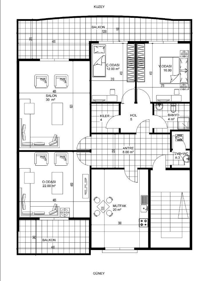 Bu konut projesinde, kullanıcı konforunu artırmak amacıyla iç mekân planlaması özenle yapılmıştır. Geniş ve ferah yaşam alanları, doğal ışığı maksimum seviyede kullanacak şekilde tasarlanmış, fonksiyonellik ön planda tutulmuştur.